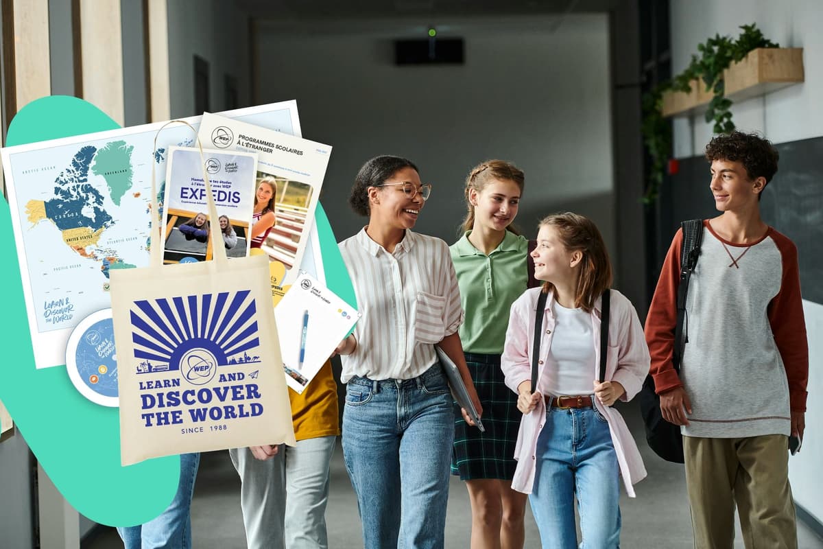 Recevez un tote bag avec des goodies WEP (Carte du monde, sac, stylo, brochures...)